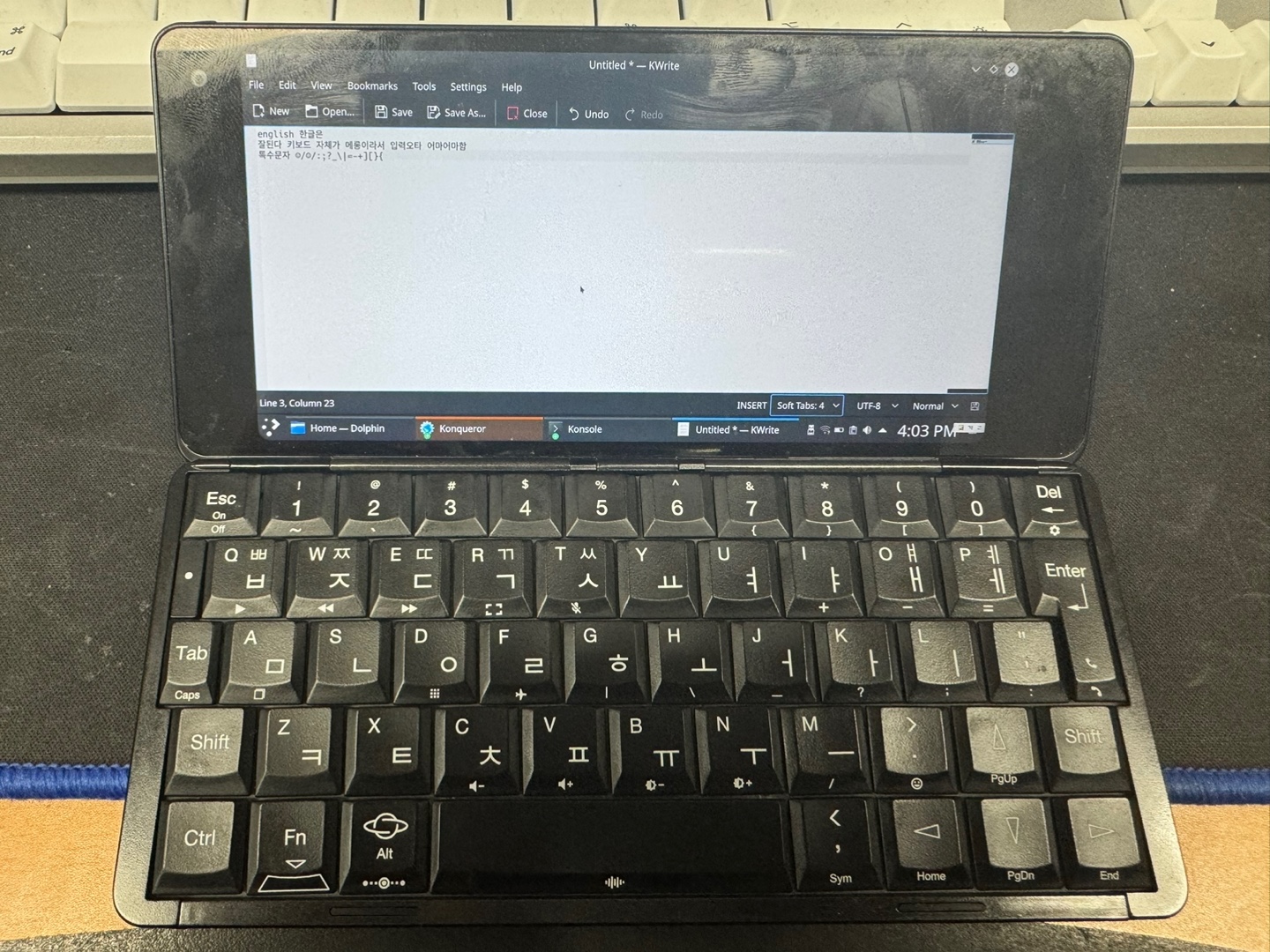한글 입력 문제가 (당장은) 해결된 Genian OS 설치된 Cosmo communicator 완성.